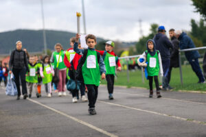 La journée a débuté par un défilé des écoles sous l’hymne olympique , avec la torche olympique . Deux de nos élèves, Lilou et Maé (CM1/CM2), ont fièrement lu le serment officiel avant le lancement des activités.
