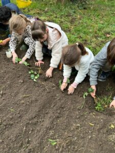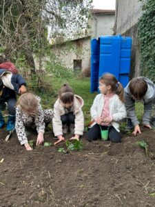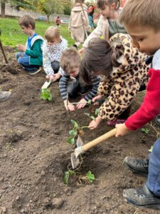 1 décembre 2025Par une belle après-midi d’automne et juste avant la pluie, les élèves de GS CP ont chaussé leurs bottes pour nettoyer le petit jardin du Parc Rigal. Au programme plantation de fraisiers!