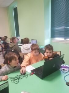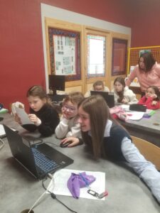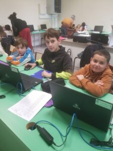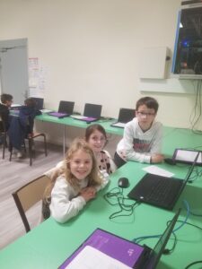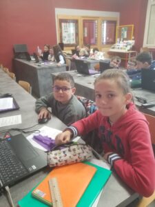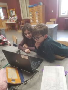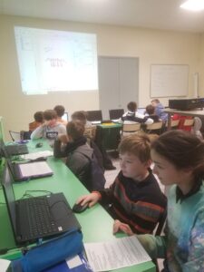 De petits groupes de travail associant collégiens et écoliers se sont constitués pour créer une affiche élaborée avec l’outil informatique.